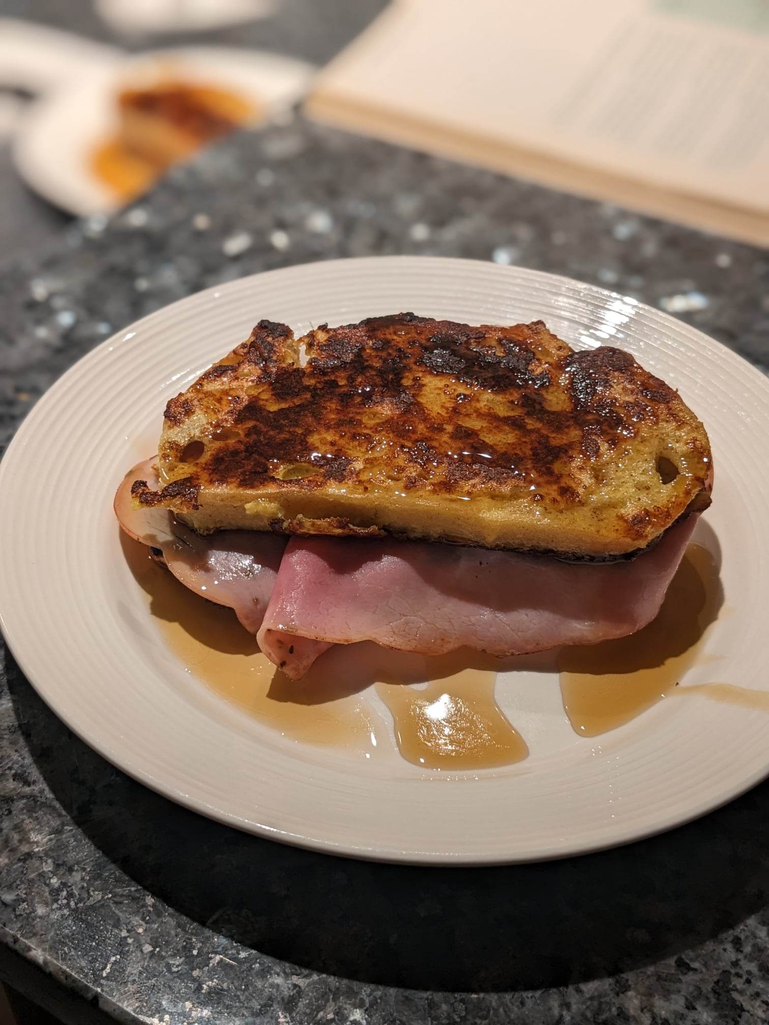 Not to be extremely cliche, but my partner has taken up making sourdough bread in the pandemic, which is a hobby I’m happy to benefit from. Here’s his first attempt – which also made an excellent croque monsieur topped with syrup from our friends’ farm.